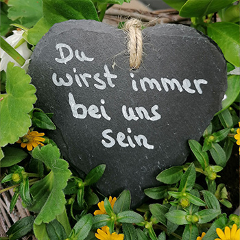 beschriftetes Schieferherz Herz aus Schieferstein, 10 cm, mit indiv., handgeschriebenem Text in weiß |